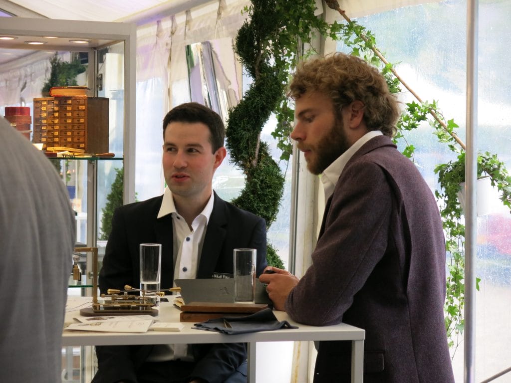 Nous rencontrons alors deux excellents et sympathiques jeunes horlogers issus de l’Ecole d’Horlogerie de Morteau (Lycée Edgar Faure), John-Mikaël Flaux et Cyril Brivet-Naudot. Discussion passionnante sur leur parcours mais surtout la présentation de très belles et originales créations pour des débuts prometteurs. Bravo à eux !