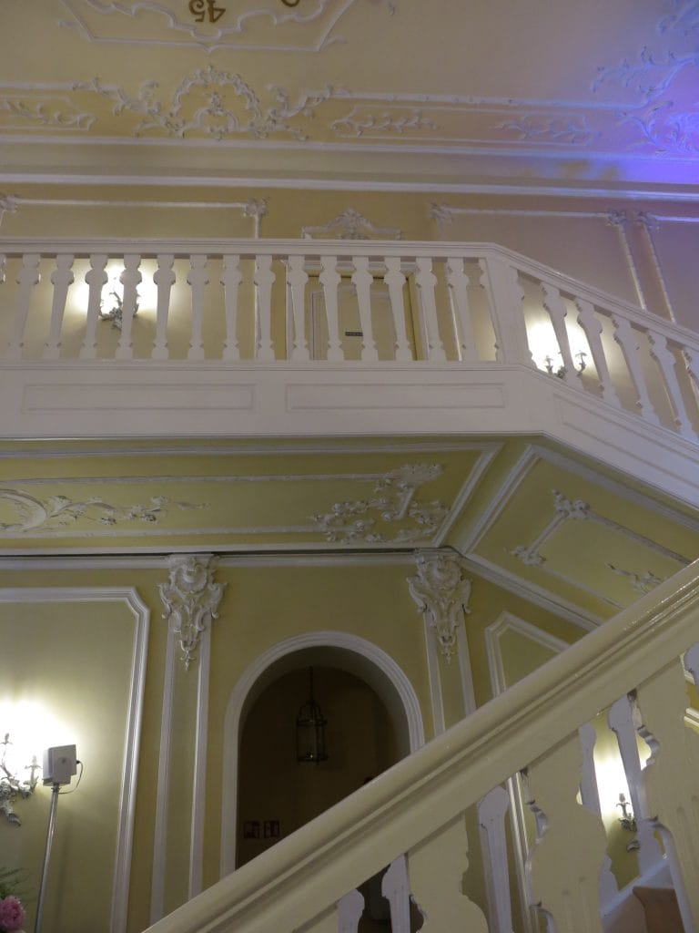Petit tour à l’étage en admirant le grand escalier et les décorations d’intérieur …