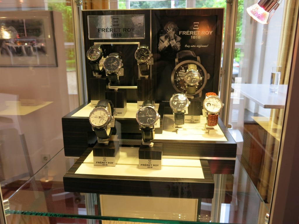 Michel Fréret-Roy et sa femme nous ont fait un accueil charmant devant la vitrine illustrant leurs créations, montres et bagues