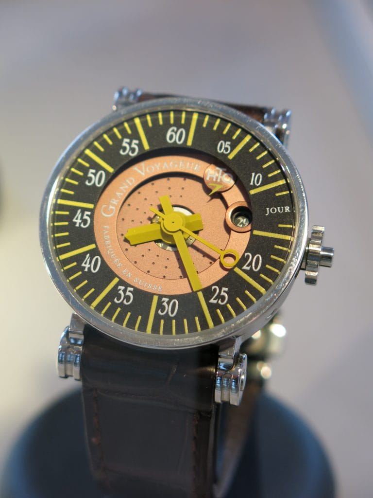 Sans oublier une Grand Voyageur, modèle conçu avec HTO Watches sur le design d’une horloge ferroviaire