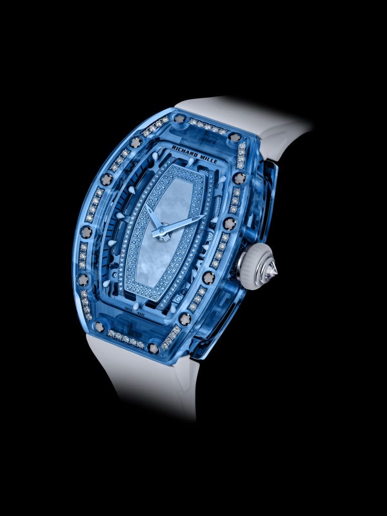 Avec la RM 07-02 Saphir Serti, Richard Mille annonce la couleur : l’or n’a plus l’apanage des pierres précieuses. Après la céramique et le Carbone TPT® sertis, c’est avec le saphir coloré que la marque exprime sa nouvelle approche du diamant.