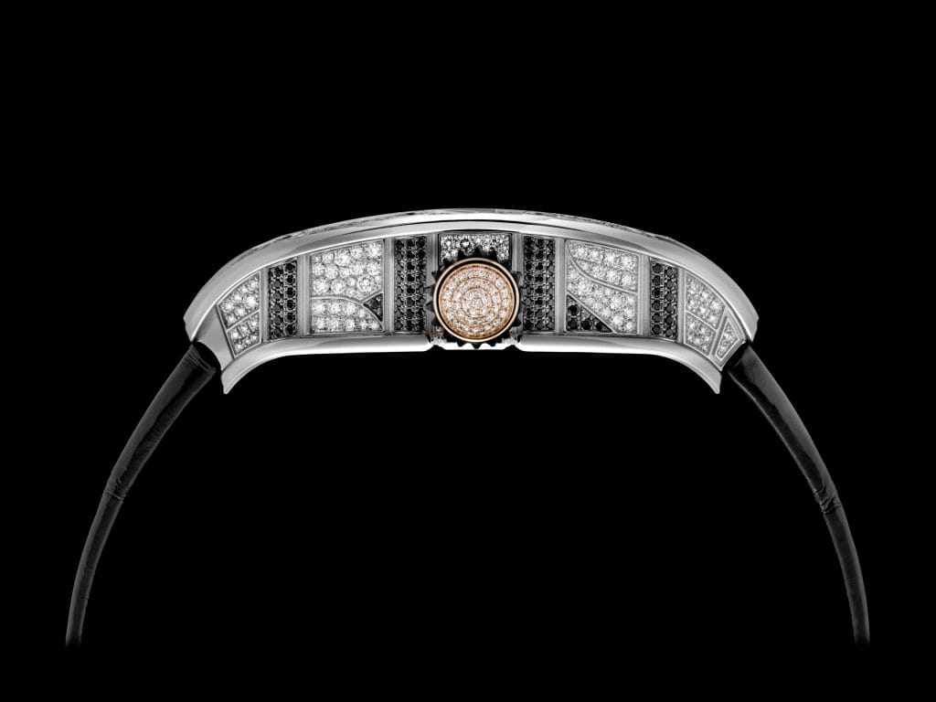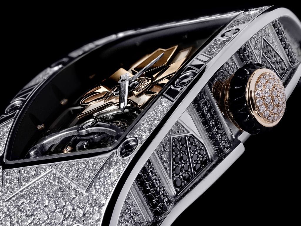 Dynamique graphique Cécile Guenat tenait elle aussi à proposer un décor joaillier à la hauteur du raffinement mécanique de la marque. Jamais autant de métiers n’auront été sollicités pour une pièce : artisans joailliers, cadraniers et horlogers se sont affairés pour satisfaire à la complexité de cette montre. Tandis que les approches artisanale et artistique se conjuguent dans le squelettage, le sertissage et la fabrication de cadrans, la mécanique elle-même est ici support d’expression de la proportion idéale. C’est ainsi que s’enclenchent les rouages et que la magie opère.