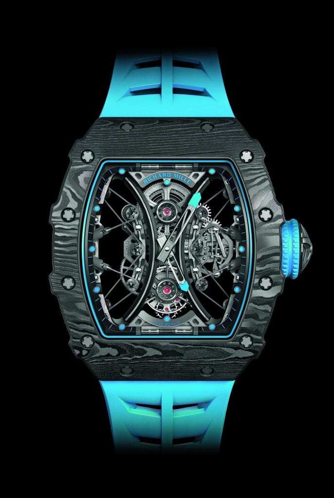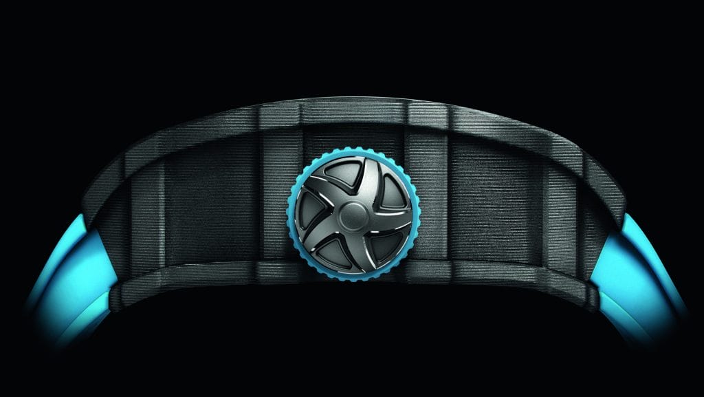 La RM 53-01 est équipée d’un verre saphir feuilleté, une première mondiale horlogère brevetée. Lors d’un impact puissant, celui-ci peut éventuellement se fissurer tel un pare-brise mais en aucun cas éclater, préservant ainsi le mouvement.