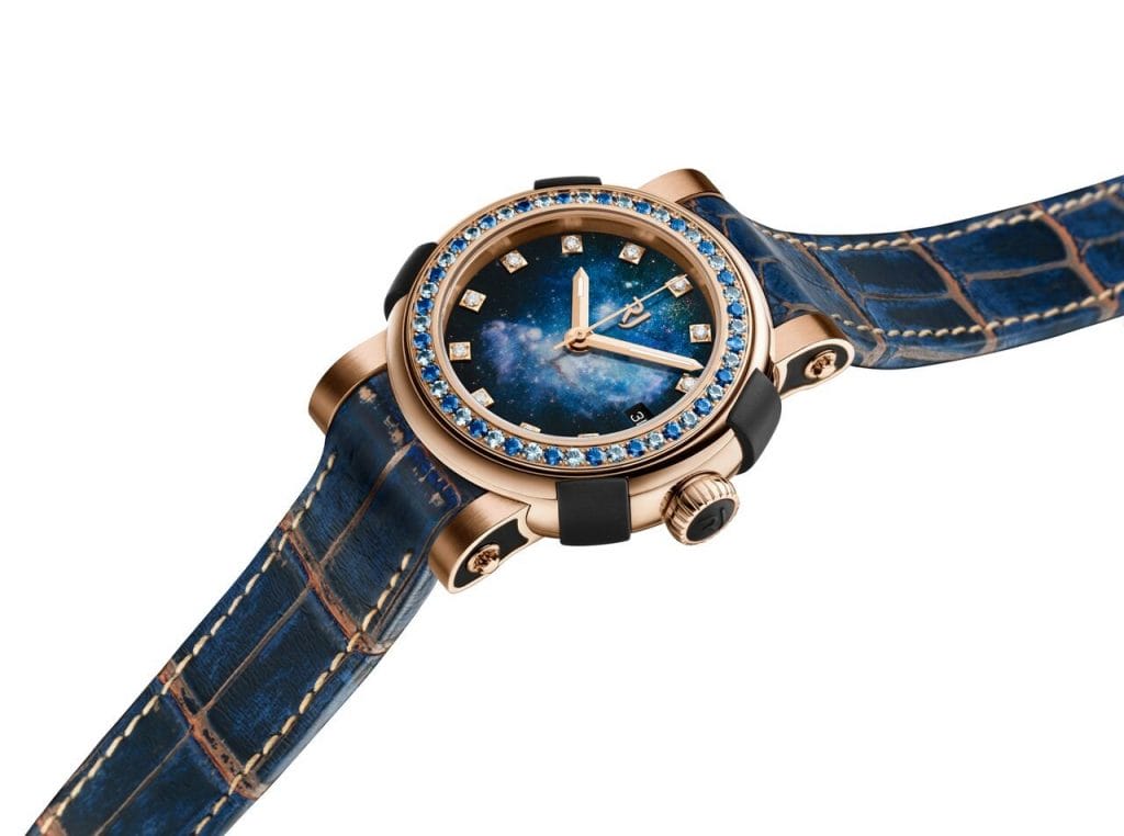 La collection est composée de 3 modèles en titane d’un modèle en or rouge 5N+ avec quatre couleurs différentes de cadrans représentant chacun un objet du ciel profond. Chaque édition est limitée à 100 pièces.