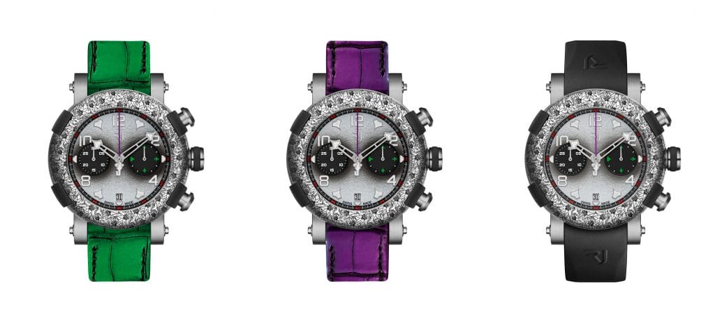 « La montre « The Joker » illustre à la perfection les partenariats de la Maison, explique Marco Tedeschi. Comme toutes les créations RJ, c’est avant tout un objet résolument horloger, associant l’artisanat suisse au nouveau style RJ ARRAW. C’est également un concentré audacieux de créativité et de culture populaire, qui s’inspire de l’un des vilains les plus flamboyants de l’univers DC pour créer une montre empreinte de la même personnalité et du même caractère. »