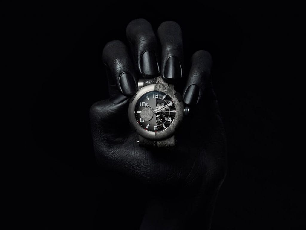 Sur le fond du boîtier en titane, on retrouve à nouveau cette finition usée obtenue grâce à une gravure laser. Chaque montre est numérotée et porte la mention « One of 100 Limited Edition ».