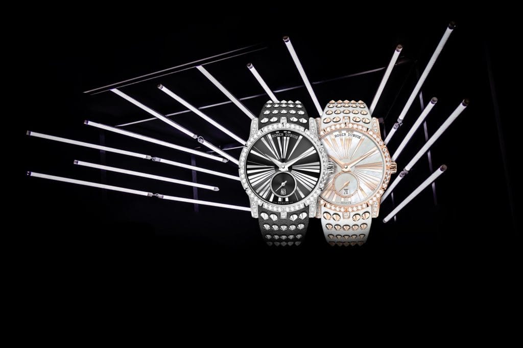 Ode à une féminité forte et engagée, le garde-temps Excalibur 36 met l’accent sur la puissance et l’esthétique. C’est donc tout naturellement que ce modèle à l’esprit « rock chic » s’intègre à l’emblématique collection Excalibur, qui constitue la plateforme d’expression préférée de Roger Dubuis. Dotée d’une forme dynamique, de contours affûtés et d’un design saisissant, la montre Excalibur 36 combine les codes haute joaillerie de la collection et une mécanique sophistiquée.
