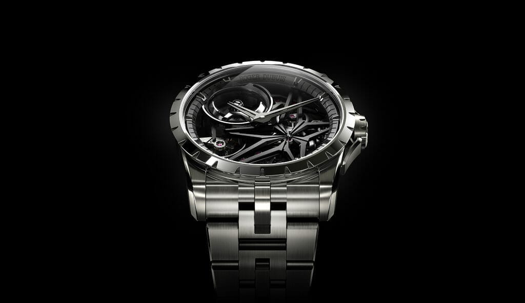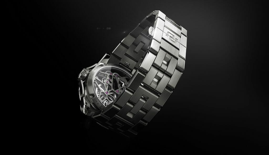 D’une grande puissance visuelle et d’une remarquable légèreté, l’Excalibur MB Titanium est une interprétation moderne d’une icône. Elle joue avec les codes de la Maison d’une manière distinctive et réaffirme l’engagement de cette dernière à façonner le futur de la haute horlogerie, en créant des montres intégralement en titane certifiées Poinçon de Genève, en dépit des difficultés liées à l’utilisation de ce matériau. Offrant la puissance de la légèreté et un confort luxueux à ceux qui vivent chaque jour à grande vitesse, elle rappelle que Roger Dubuis est la façon la plus palpitante de vivre l’Hyper Horlogerie™.