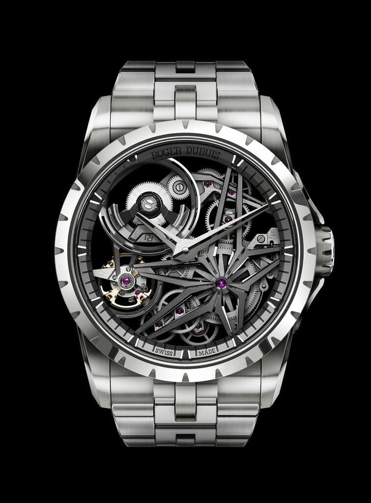 Fidèle à son approche révolutionnaire, Roger Dubuis propose une nouvelle version de son iconique Excalibur MB en titane. En plus d’être 33 % plus léger que l’acier et d’afficher un rapport poids/résistance légendaire, ce métal de l’ère spatiale est doté de nombreuses qualités intrinsèques, de sa douceur naturelle à son caractère hypoallergénique, à sa haute résistance à la corrosion et à ses propriétés antimagnétiques. Doux sur la peau, confortable et résistant, le titane représente le choix ultime des amateurs à la recherche d’une montre adaptée à la vie moderne.