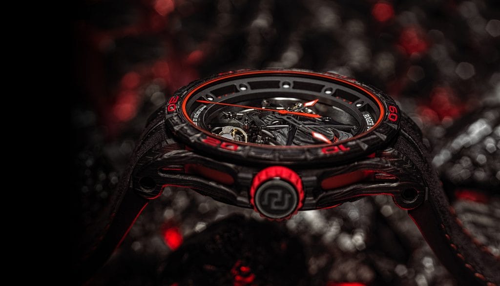 À travers à ce parfait exemple d’hyper horlogerie, tout aussi personnalisé que le bolide spectaculaire qui l’a inspiré, Roger Dubuis invite sa clientèle exclusive à le suivre dans une nouvelle aventure auto-horlogère incroyable.