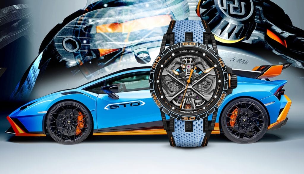 Comme son nom l’indique, ce garde-temps racé se veut l’alter ego horloger de la Lamborghini Huracán STO – super-sportive homologuée pour la route inspirée de l’héritage de courses incarnées par la Huracán Super Trofeo EVO de Lamborghini Squadra Corse. Parmi les caractéristiques notables du bolide : des roues arrière directrices et un moteur V10 de 640 chevaux à aspiration naturelle, gage d’une accélération à couper le souffle jusqu’à 310 km/h et d’une explosion d’émotions au volant.