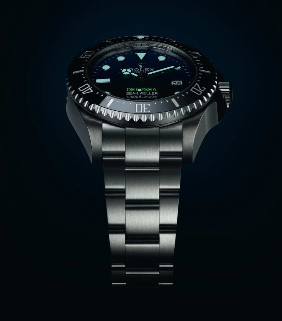 Réalisée en acier Oystersteel, elle se pare d’un cadran D-blue qui présente un dégradé allant du bleu nuit au noir intense. Ce cadran a été lancé en 2014 sur une version commémorative en l’honneur de l’expédition DEEPSEA CHALLENGE, qui, avec le soutien de Rolex et de la National Geographic Society, a conduit le réalisateur et explorateur James Cameron au point le plus profond des océans, à 10 908 mètres sous la surface, dans la fosse des Mariannes. Comme toutes les montres Rolex, la nouvelle Rolex Deepsea bénéficie de la certification Chronomètre Superlatif pour garantir d’excellentes performances au poignet.