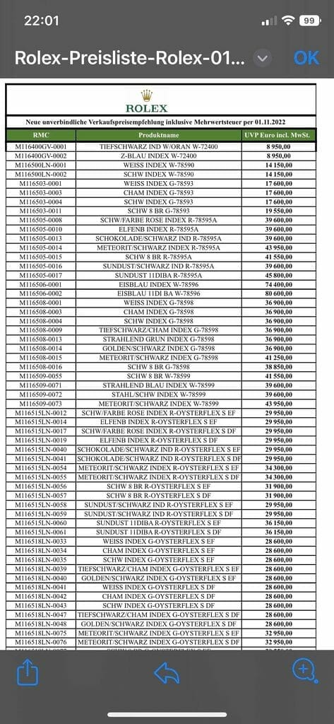 En fait il s’agit d’une correction en lien direct avec l’évolution du taux de change CHF vs €. Certaines marques l’ont fait en août ou en septembre dernier, Rolex devrait attendre novembre prochain. Et il est possible que cela ne concerne que les pièces en or, étant donné qu’elles n’avaient pas ou peu été concernées en janvier dernier.