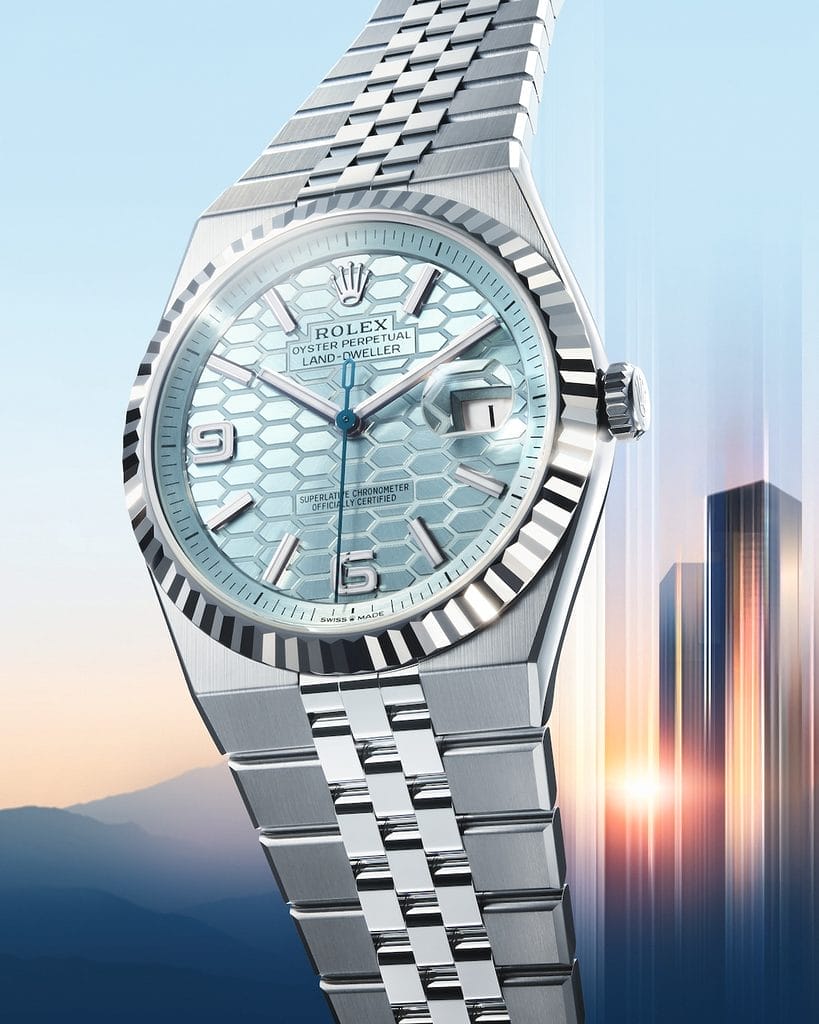 La Land-Dweller n’est pas une extension d’une collection existante. Elle est une collection inédite, une signature visuelle forte, qui vient inscrire une nouvelle géographie dans le lexique Rolex. Un geste fort. Un acte fondateur.