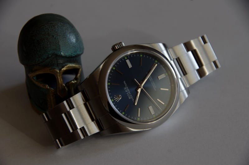 Ma boîte à montres compte désormais autant de Rolex que d’Omega et de Seiko. Après avoir acquis une Submariner puis une Datejust, une Oyster Perpetual transforme mon duo en trio. Lorsque Rolex a présenté ces nouveaux modèles en 2015 dans un boîtier de 39 mm de diamètre, ils ont immédiatement attiré mon attention. Notamment les versions avec les cadrans bleus et gris.