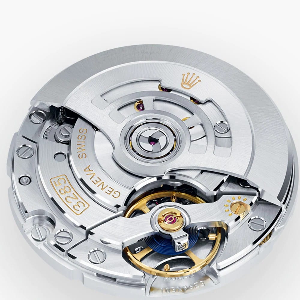 Le calibre 3285 intègre l’échappement Chronergy, breveté, qui combine un haut rendement énergétique avec une grande sécurité de fonctionnement. Réalisé en nickel‑phosphore, cet échappement est insensible aux champs magnétiques. Ce mouvement comprend aussi une version optimisée du spiral Parachrom bleu, produit par la marque dans un alliage paramagnétique qui le rend de surcroît jusqu’à dix fois plus précis qu’un spiral traditionnel en cas de chocs. Le spiral Parachrom bleu est en outre muni d’une courbe terminale Rolex, qui assure la régularité de la marche dans toutes les positions. L’oscillateur est monté sur des amortisseurs de chocs haute performance Paraflex, développés par Rolex et brevetés, qui confèrent au mouvement une résistance aux chocs accrue.