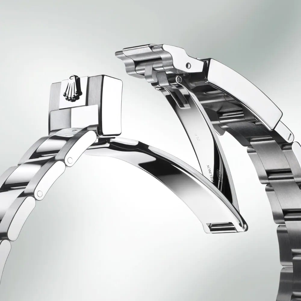 Le bracelet Oyster de cette nouvelle déclinaison est équipé d’un fermoir de sécurité Oysterlock à boucle déployante, conçu par Rolex et breveté, prévenant toute ouverture involontaire. Il dispose de la rallonge rapide de confort Easylink, développée par la marque, qui permet d’ajuster facilement sa longueur d’environ 5 mm. Par ailleurs, un système de fixation invisible offre une parfaite continuité visuelle entre le bracelet et le boîtier.