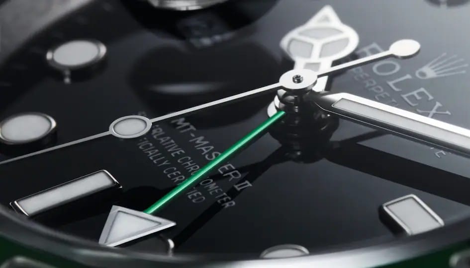 Le statut de Chronomètre Superlatif est symbolisé par le sceau vert dont est assortie chaque montre Rolex et s’accompagne d’une garantie internationale de cinq ans.