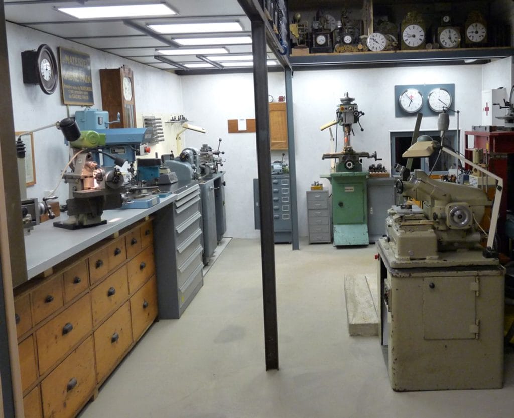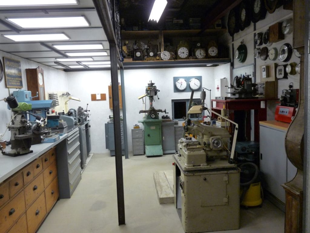 Les 4 ateliers (montres, pendules et horloges, fabrications, conceptions), une boutique avec une dizaine de marques de montre, bracelets et accessoires, un centre de formation, et l’exposition d’une collection privée.