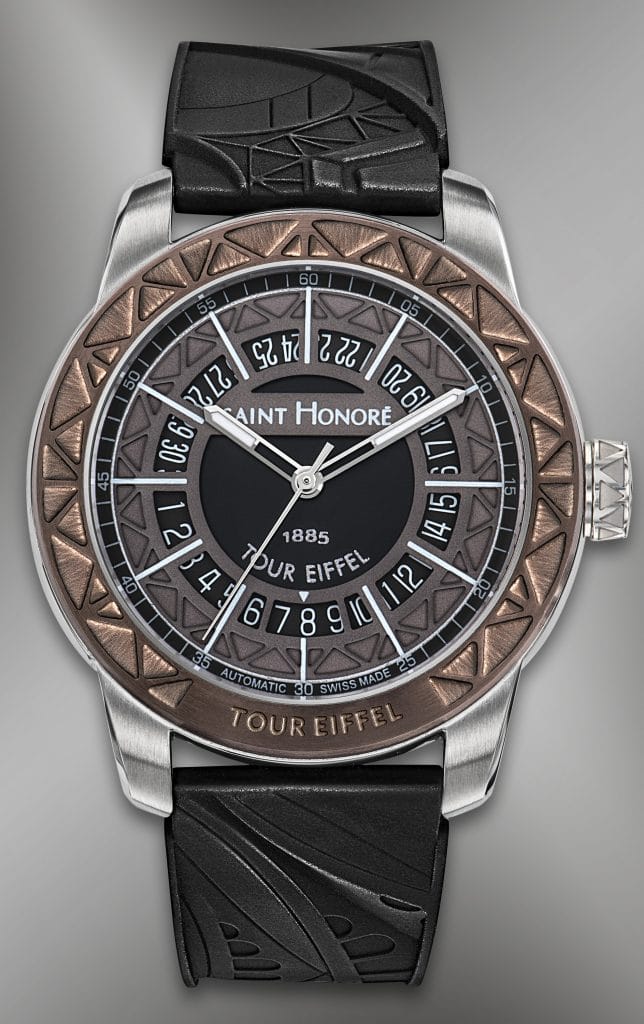 La maison horlogère SAINT HONORE dévoile une nouvelle version de son emblématique montre « Tour Eiffel », dotée d’une première mondiale : un bracelet en polyuréthane mélangé à de la poudre du métal de l’édifice parisien.