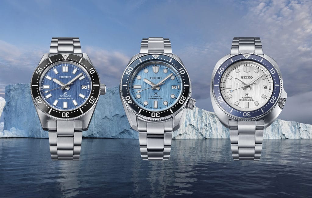 Aujourd’hui, Seiko accueille dans sa collection Prospex trois réinterprétations modernes des montres de plongée légendaires de cette période, dont le design s’inspire des glaciers que ces pionniers ont parcourus et qui façonnent les paysages terrestres et marins de l’Arctique et de l’Antarctique. Chacune d’entre elles possède un cadran qui évoque une nuance différente de surface glaciaire, du bleu profond au blanc.