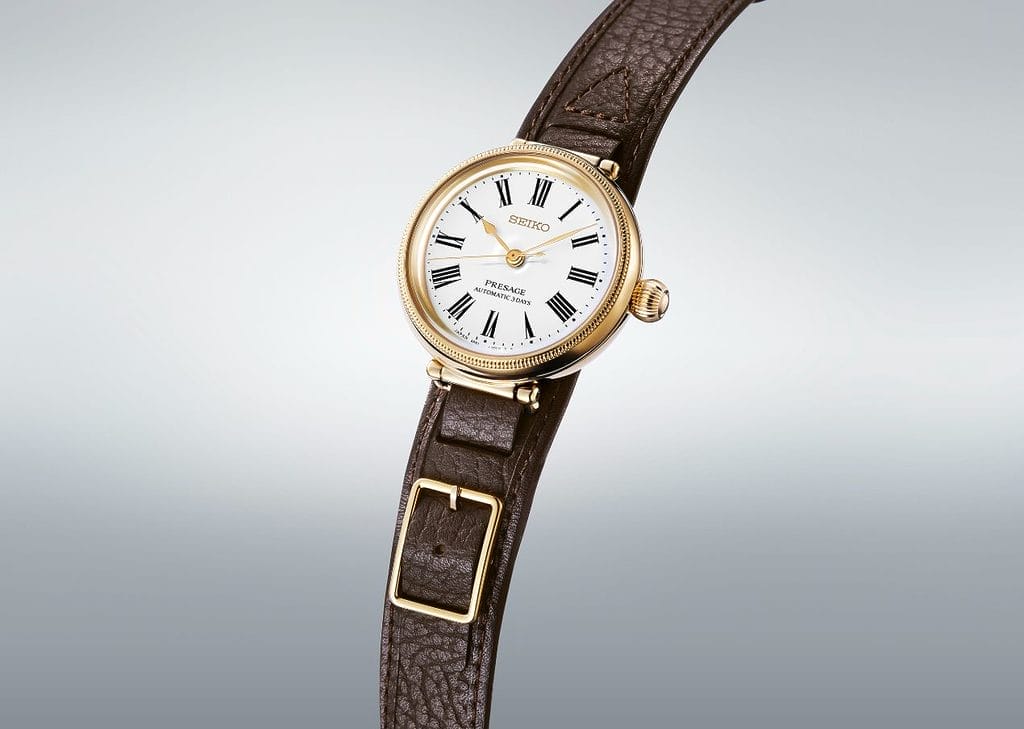Avec Presage, Seiko rend hommage à l’horlogerie classique et au savoir-faire artisanal japonais. Le modèle anniversaire s’inspire directement de la Timekeeper originelle. Il se distingue par une couronne oignon, une lunette aux détails en relief et un cadran en émail blanc lisse, marqué de fins chiffres romains.