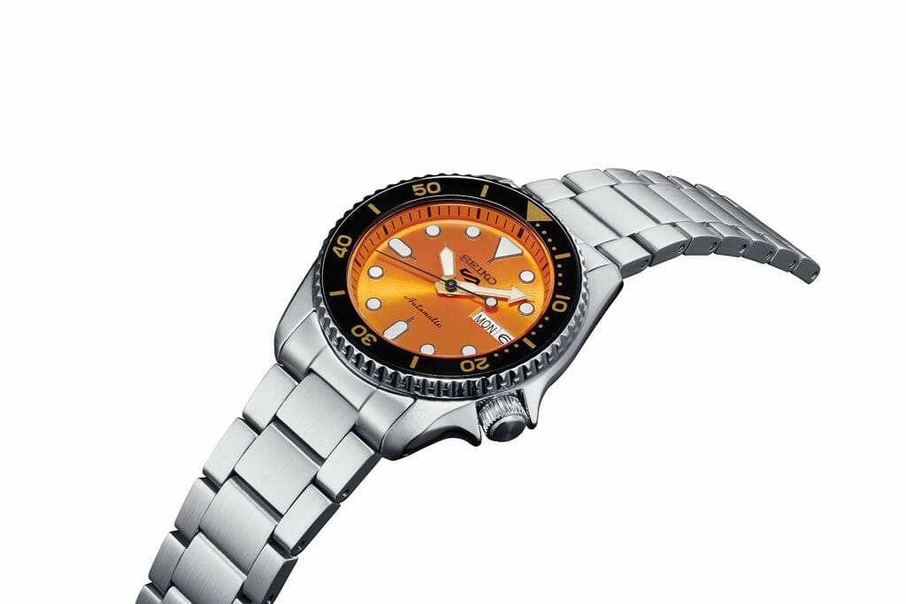 Ces nouveautés reprennent les codes des plongeuses à quartz lancées par Seiko dans les années 80. On retrouve le boîtier emblématique de la collection Seiko 5 dans une version réduite à 38mm. Ce nouveau boîtier est également plus fin que les collections 5 Sports déjà présentes au catalogue.