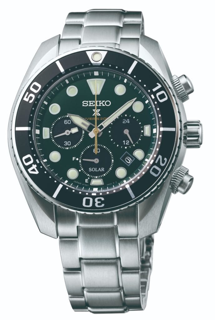 La troisième montre est un chronographe solaire étanche à 200 m. Il s’agit également d’une édition limitée à 4 000 exemplaires. Toutes trois sont présentées sur des bracelets en acier inoxydable mais sont également accompagnés d’un bracelet supplémentaire en silicone. Les trois montres seront disponibles en mars dans les boutiques Seiko et chez certains partenaires sélectionnés dans le monde entier.