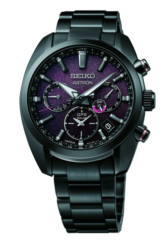 Ce cadran subtilement coloré s’assombrit vers la position six heures, ajoutant une mystérieuse profondeur et renforçant l’illusion d’une douce soirée de printemps au Japon. Le boîtier a la même silhouette incurvée et les mêmes larges cornes que le modèle Quartz Astron de 1969. Il abrite le calibre GPS solaire Dual-Time 5X53 le plus perfectionné qui s’ajuste à l’heure exacte n’importe où* dans le monde, en utilisant uniquement l’énergie de la lumière et qui offre un ajustement ultra-rapide au fuseau horaire et une fonction permutation de l’heure.