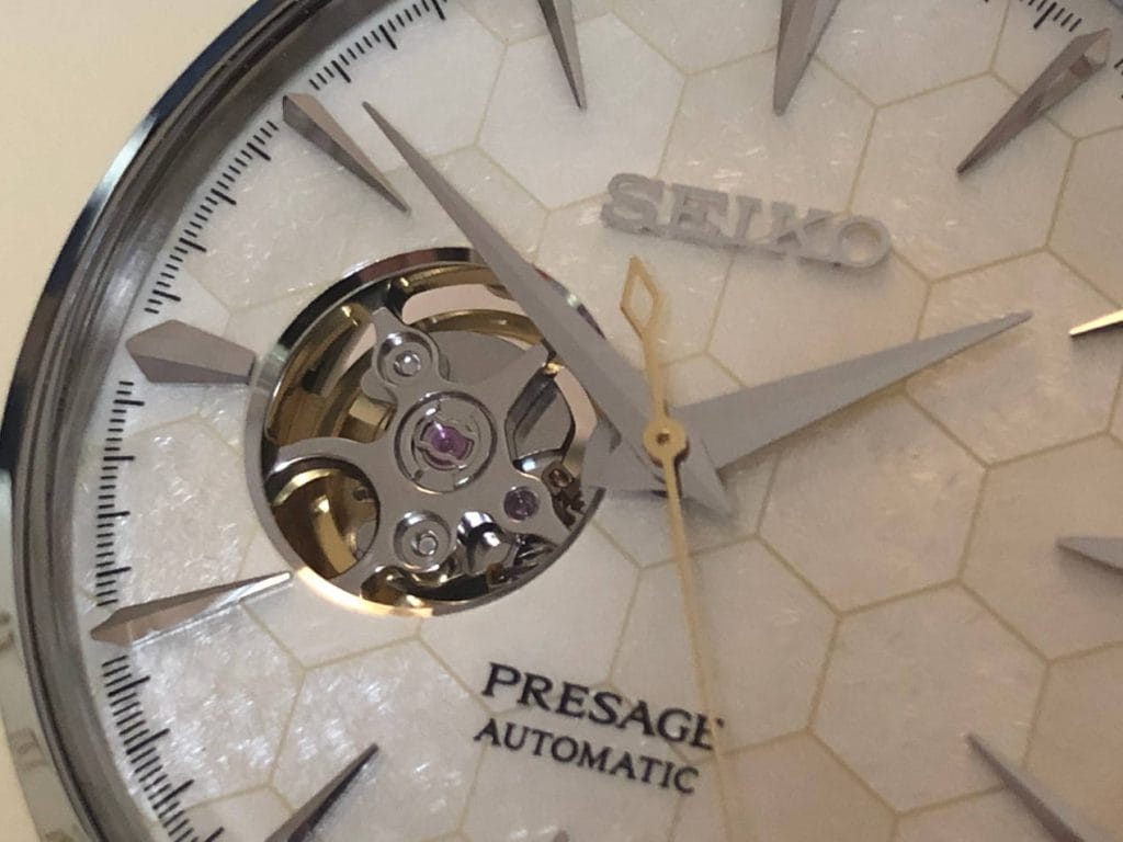 Et bien entendu, pour les amoureux de belle mécanique, une ouverture cerclée sur le cadran est du plus bel effet, pour laisser entrevoir une partie du mouvement. Ce mouvement équipant cette SSA409J1 est le 4R38, calibre mécanique à remontage automatique offrant une réserve de marche de 41 heures.