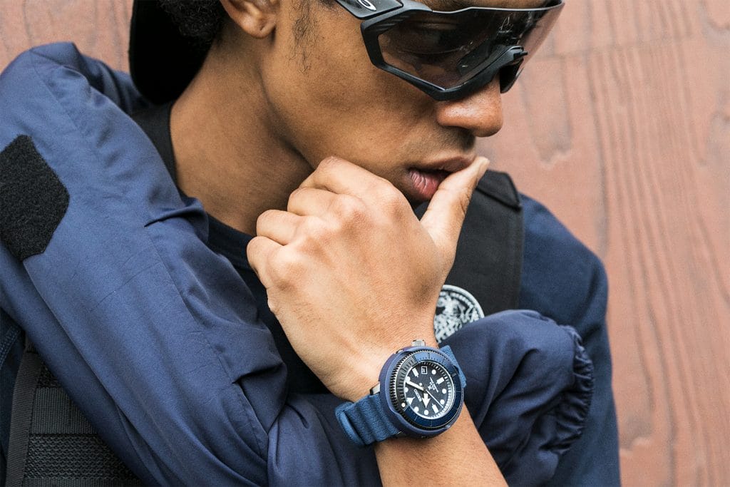 Seiko s’adresse ici aux « Millenials », cette génération qui aime le street wear, l’écologie et les défis sportifs ou artistiques. Ils réinventent la fonction de la diver’s et la détournent en objet identitaire qui fait échos aux nouveaux loisirs urbains et sportifs.