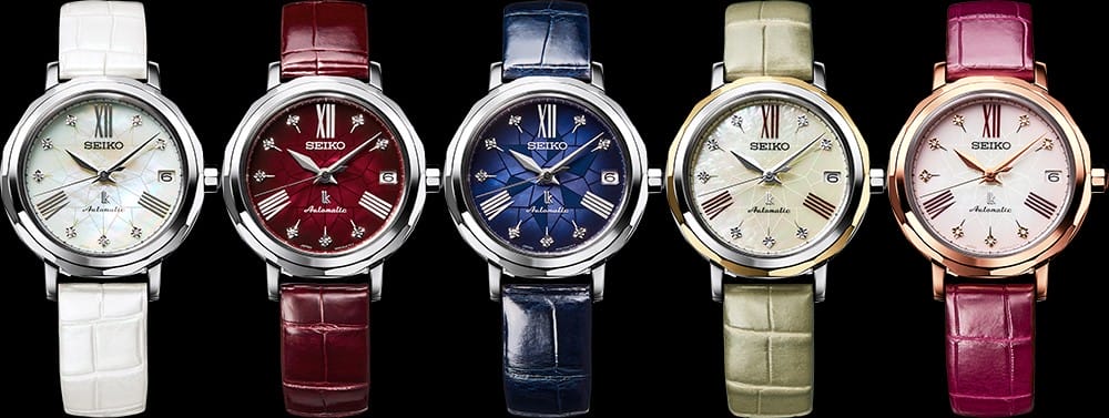 La nouvelle collection Seiko Lukia célèbre le glamour, la fougue et le raffinement de Ginza aujourd’hui. Depuis 1995, Lukia orne les poignets des femmes au Japon et est désormais, pour la première fois, disponible en dehors de l’Asie. La collection comprend six créations, dont chacune dispose d’un cadran dévoilant une couleur traditionnelle japonaise sur une base en nacre décorée d’un motif de fleur et de huit index diamants. Le cadran et son rebord sur la lunette interne sont colorés, ce qui permet à toute la richesse de la couleur de se fondre harmonieusement avec la texture de la nacre. Le boîtier offre une sensation douce et délicate au poignet grâce à ses flancs parfaitement arrondis.