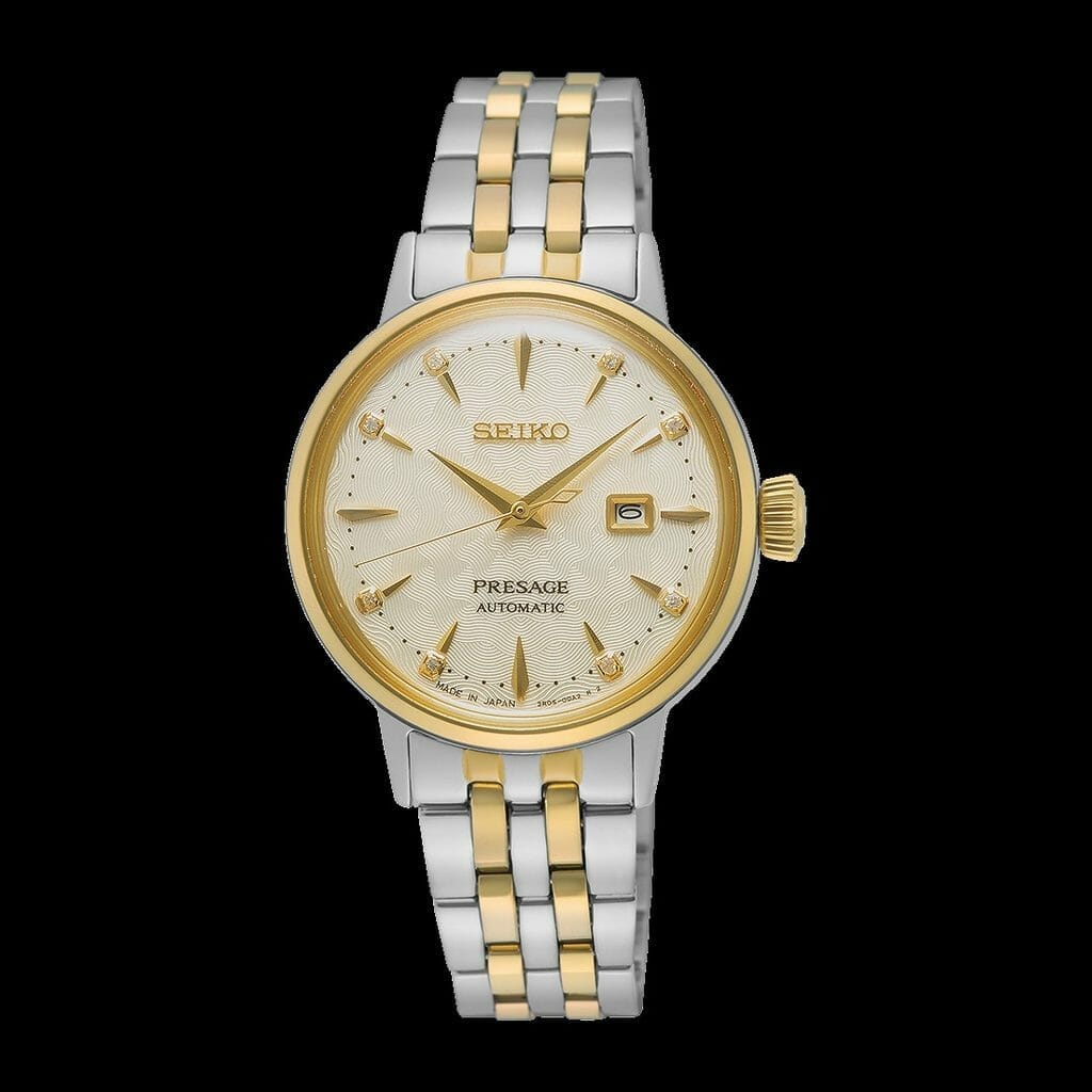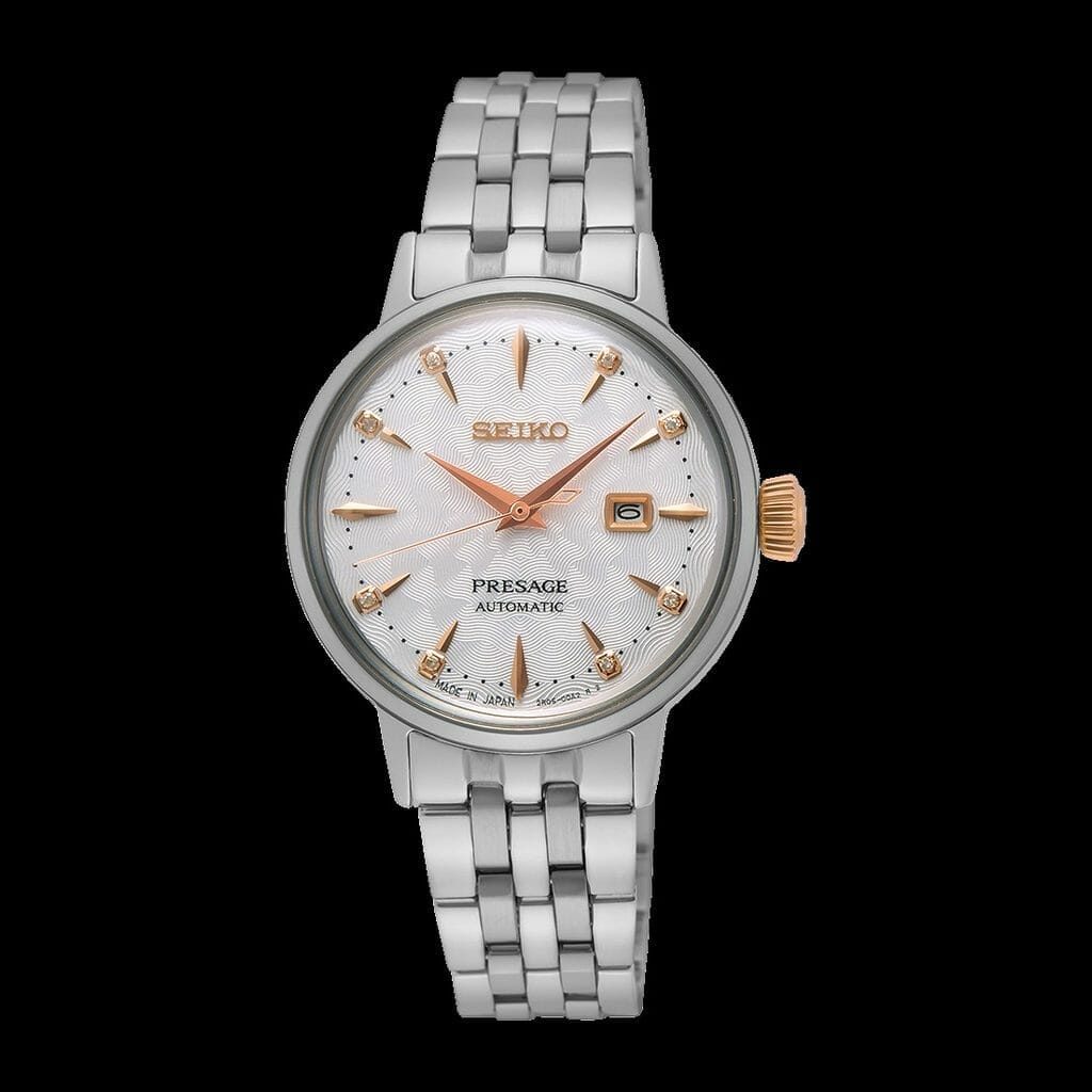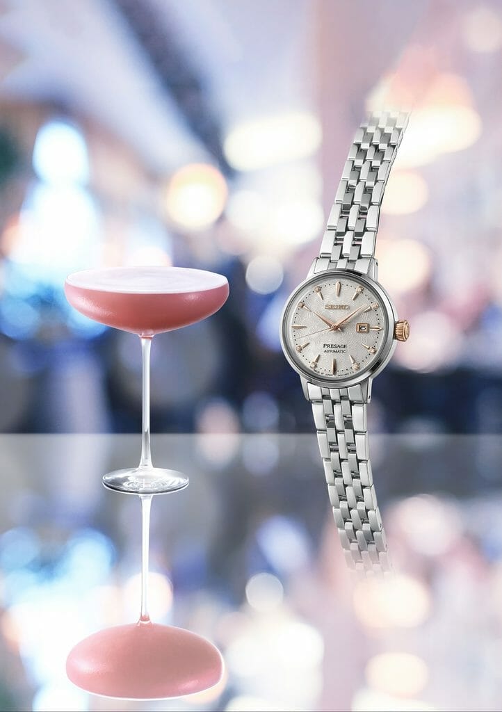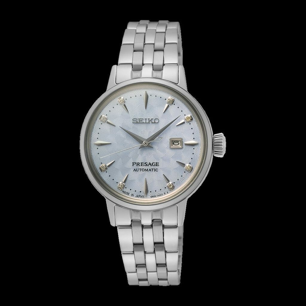 Trois magnifiques cadrans évoquant des cocktails, huit diamants placés aux heures et un verre bombé de style vintage font de la dernière gamme de montres Presage Cocktail Time pour femmes, l’une des plus élégantes jamais réalisée par Seiko.