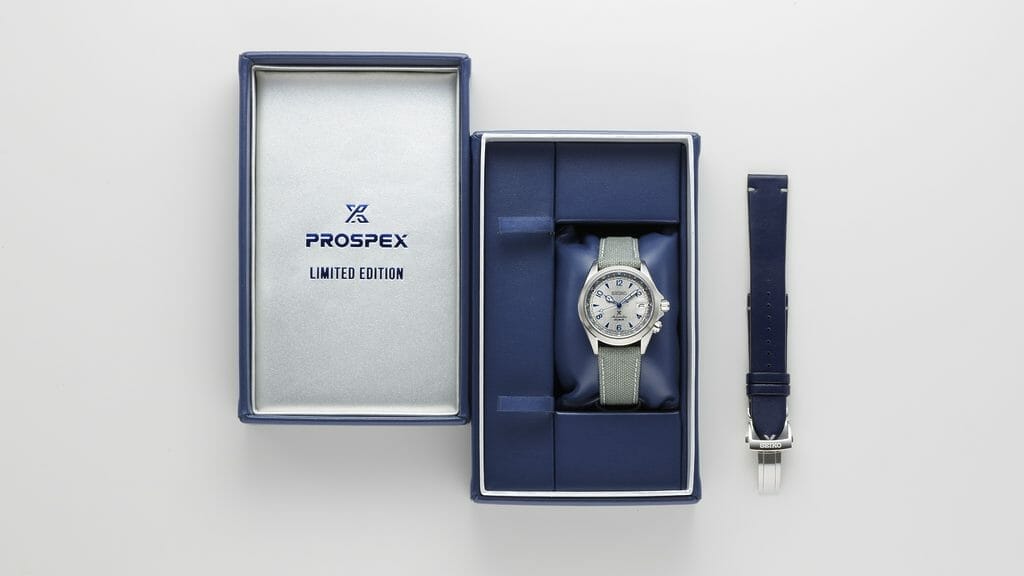 Cette montre est proposée avec une lunette tournante à usage boussole, résistante avec une étanchéité à 20 bars, elle est parfaite pour ceux qui aiment les sports terrestres tels que le trekking et l’alpinisme. Ce modèle est équipé du calibre 6R35, qui offre une réserve de marche de 70 heures. Le verre saphir est équipé d’un revêtement anti-reflet sur la surface intérieure et d’une loupe pour la date à 3 heures. La montre est proposée dans un coffret spécifique, avec un bracelet supplémentaire en cuir de veau bleu.