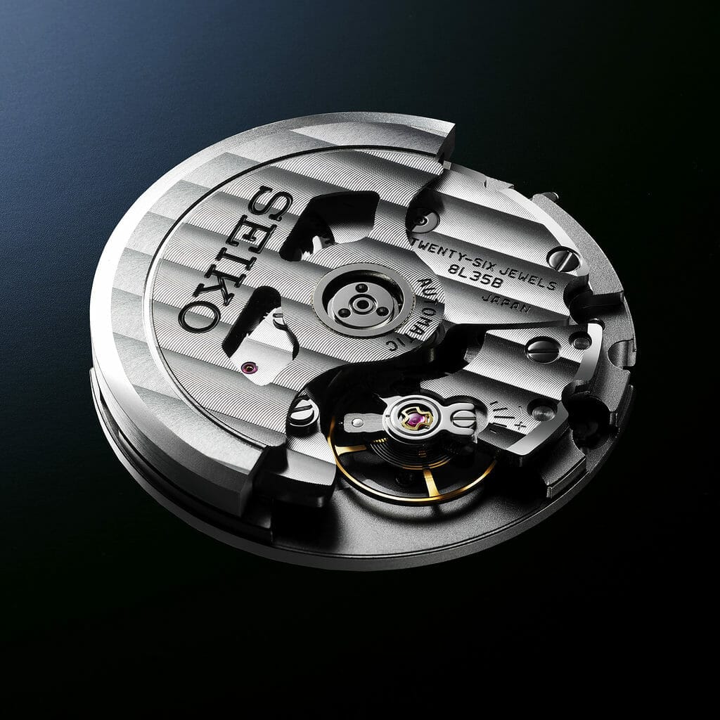 Le garde-temps est animé par le calibre 8L35, développé spécialement pour les montres de plongée et assemblé à la main par les artisans les plus qualifiés de Seiko. Le boîtier est recouvert d’un revêtement super-dur pour le protéger des rayures, et le verre Saphir incurvé est doté d’un revêtement antireflet sur sa surface intérieure pour garantir une grande lisibilité sous tous les angles.