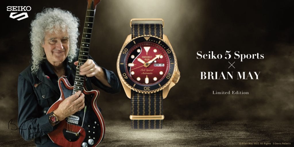 Tout au long de sa carrière, la légende du rock Brian May a été porté par sa guitare « Red Special » pour créer le son qui a contribué à faire de Queen l’un des groupes de rock les plus admirés et les plus célèbres au monde. Il a également été soutenu par Seiko. Depuis plus de 40 ans, Brian porte une montre de plongée Seiko dont le design populaire et durable est l’inspiration de la dernière collection Seiko 5 Sports. Brian a acheté sa montre Seiko lors de sa première tournée au Japon dans les années 1970. Depuis lors, sa guitare et sa montre ont parcouru le monde ensemble – en faisant de la grande musique et en étant toujours à la bonne heure.