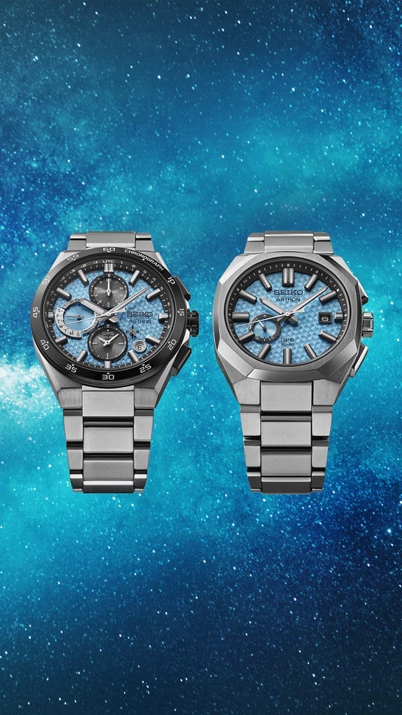 Aujourd’hui, Seiko présente deux nouvelles créations Astron GPS Solaire inspirées par le ciel nocturne étoilé. L’éclat puissant et la beauté des constellations qui scintillent dans la nuit infinie s’expriment dans les cadrans bleu clair aux motifs étoilés, dont l’aspect change selon l’angle de vue.