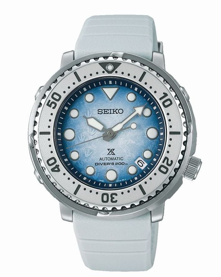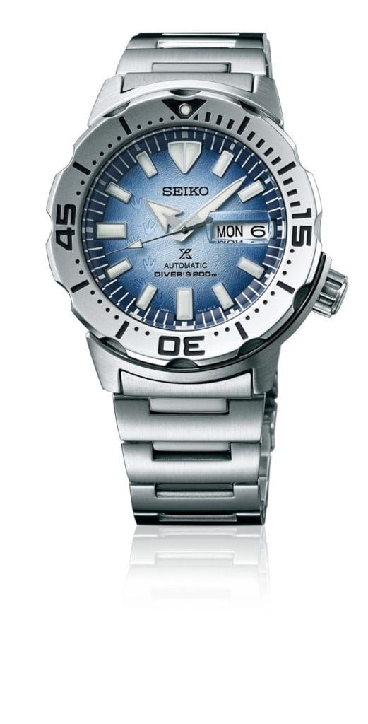Avec cette collection composée de montres étanches jusqu’à 200 mètres de profondeur, idéal pour la plongée de loisirs, Seiko apporte tout son soutien à la PADI AWARE Foundation™. Deux nouvelles montres rejoignent cette collection. Elles se distinguent par leur cadran d’un nouveau coloris bleuté inspiré de la banquise et sur lequel est représenté un motif d’empreintes de pingouins. Ce cadran est parcouru de larges index en Lumibrite pour une lecture optimale de l’heure lors des explorations sous-marine.