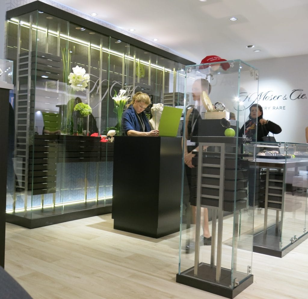 Le stand commun entre les maisons Hautlence et H. Moser & Cie a manifestement attiré de nombreux visiteurs du SIHH qui ont pu y retrouver dans ses vitrines l’emblématique Swiss Mad Watch accompagnée de la pomme de Guillaume Tell vert Moser et surmontée de la casquette brodée de l’injonction « Make swiss made great again » !