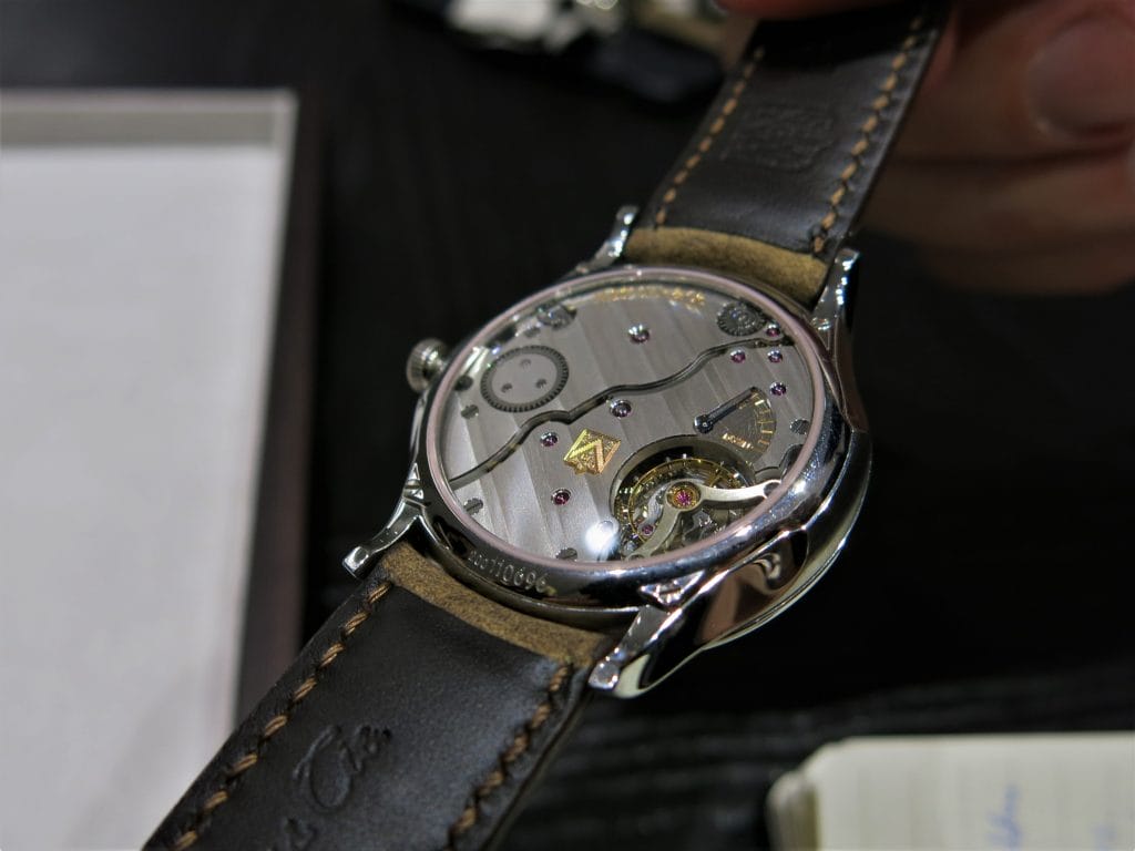 Mais la version choc du SIHH 2018 est sûrement cette nouvelle déclinaison : une version de cet Endeavour Tourbillon Concept en acier et fond gris fumé de toute beauté sur lequel se détachent les aiguilles bleuies.