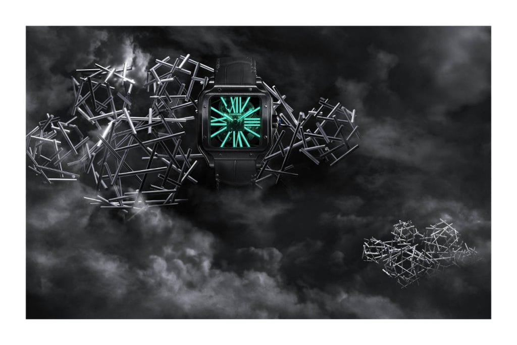 La maison Cartier est en terrain conquis au SIHH. Principale marque du groupe Richemont, la griffe de la panthère marque chaque année son territoire. Baignoire, Panthère ou autre Santos ont été mises à l’honneur cette année. Mais si nous ne devions en retenir qu’une ce serait la Santos Squelette. Non pas pour une innovation technique en particulier, mais pour son style. Un style à découvrir et à apprécier particulièrement dans la pénombre…
