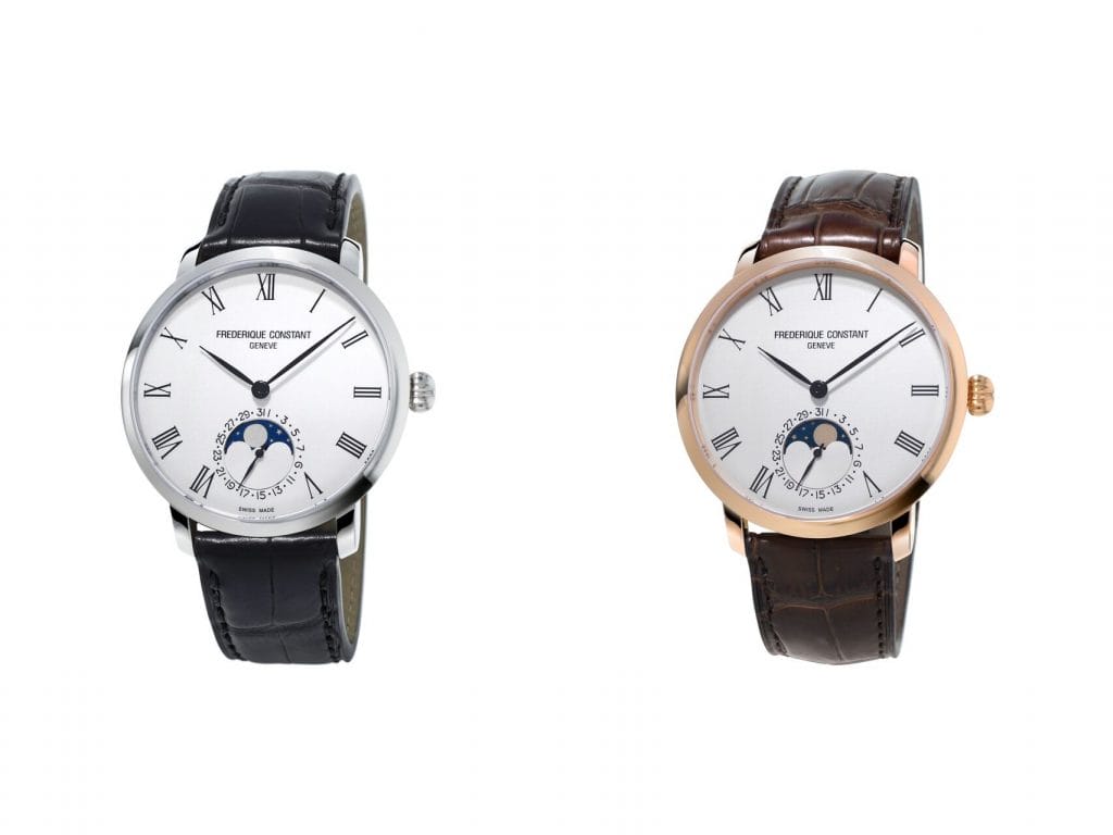 Comme cela est toujours le cas pour les montres Frédérique Constant, la complication phases de lune est d’une grande simplicité d’utilisation. Pour la configurer, il suffit de consulter un calendrier des phases de lune et de synchroniser la montre en conséquence. Il convient d’abord d’appuyer sur la couronne et de la remonter jusqu’à atteindre la phase de lune souhaitée, puis de tirer la couronne pour régler la date. La Slimline Moonphase Manufacture est alors prête à l’emploi.
