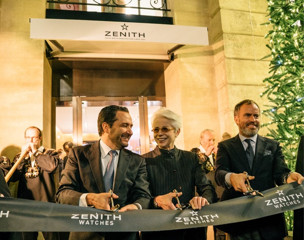 La soirée d’inauguration de la nouvelle boutique éphémère Zénith, ouverte sur la prestigieuse place Vendôme à Paris, s’est déroulée le 28 novembre 2017. Julien Tornare, CEO de Zenith et Arnaud Vidal, Directeur Général de Zenith France, Belgique et Luxembourg, ont accueilli les nombreux invités de la marque dans une ambiance festive placée sous le signe de la Suisse.