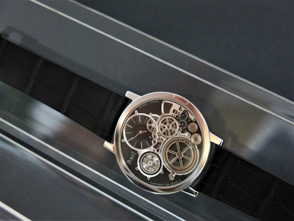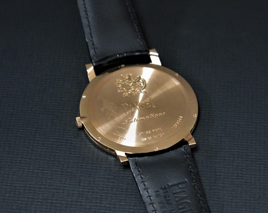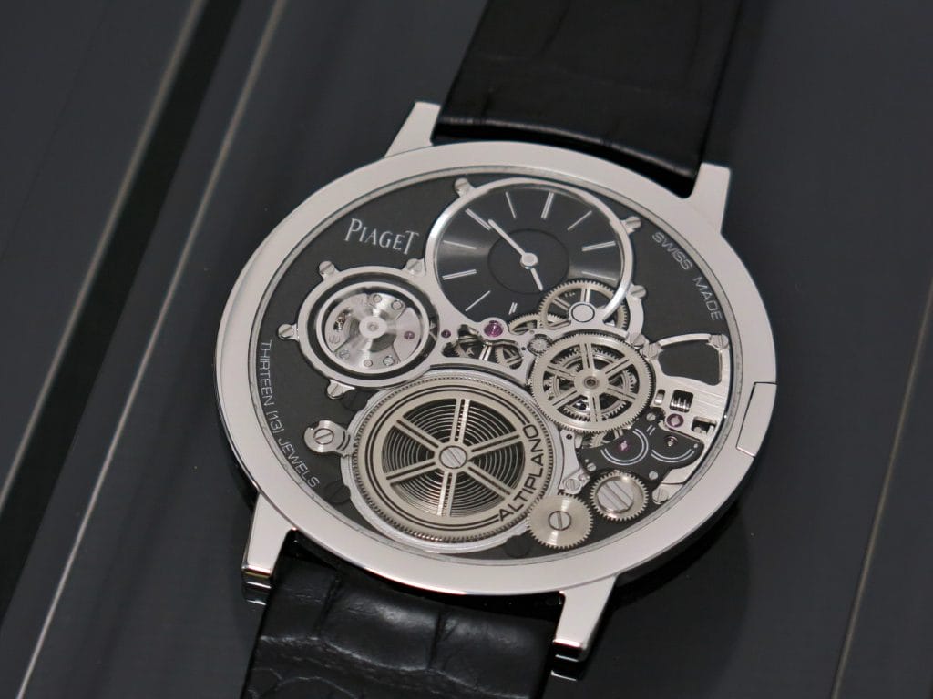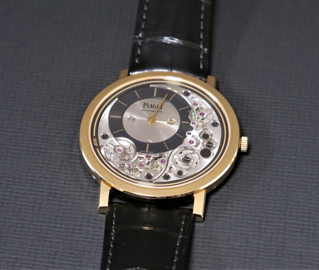 L’Altiplano Ultimate Automatic se distingue par sa construction de mouvement inversée (les pivots en rubis sont visibles côté cadran) et son épaisseur totale réduite à 4,3mm qui lui octroie le statut de montre automatique la plus plate au monde à ce jour.