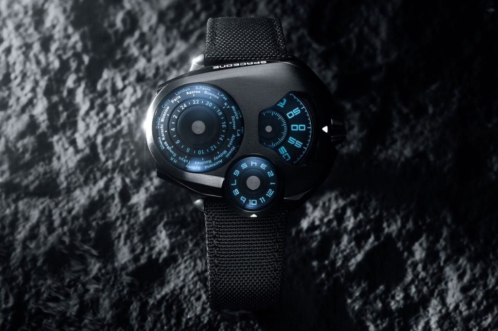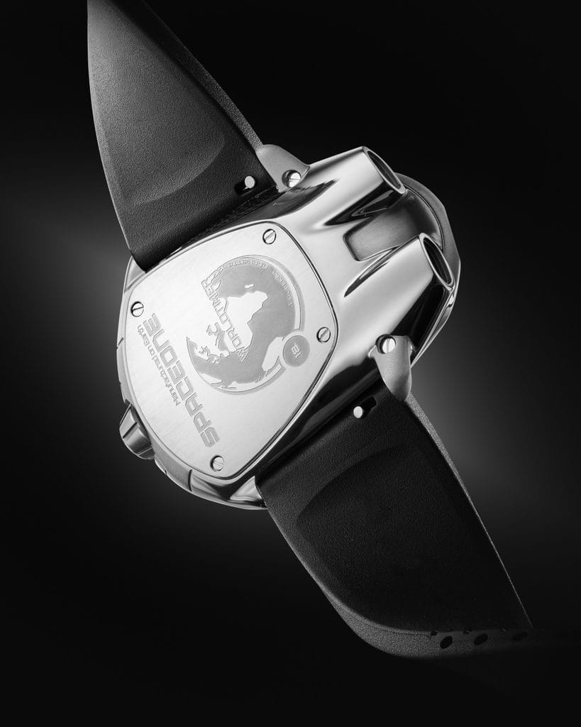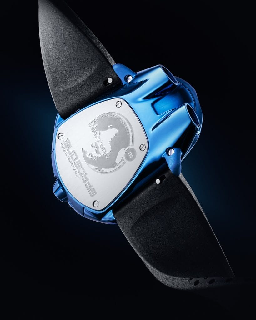 Un agencement qui évoque plus un module spatial qu’un cadran classique, une signature SpaceOne, entre technique affirmée et esthétique d’avant-garde.