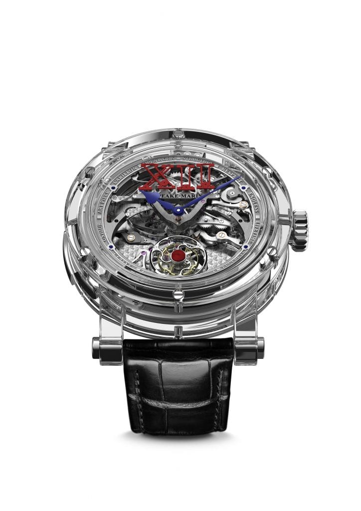 La nouvelle création de la collection de Haute Horlogerie Speake-Marin a été nommée “Légèreté”, pour mettre en avant sa boîte en saphir qui permet de littéralement plonger dans le mouvement à partir du dessus, des côtés ou du fond. La boîte est faite de trois parties: la lunette, la carrure et le fond. Le process selon lequel le saphir est fabriqué en boîte de montre est particulièrement difficile et nécessite beaucoup d’heures machine et de polissage. La partie la plus difficile à effectuer est la finition de la boîte où il faut absolument éviter de rayer le saphir: la boîte doit être totalement transparente.