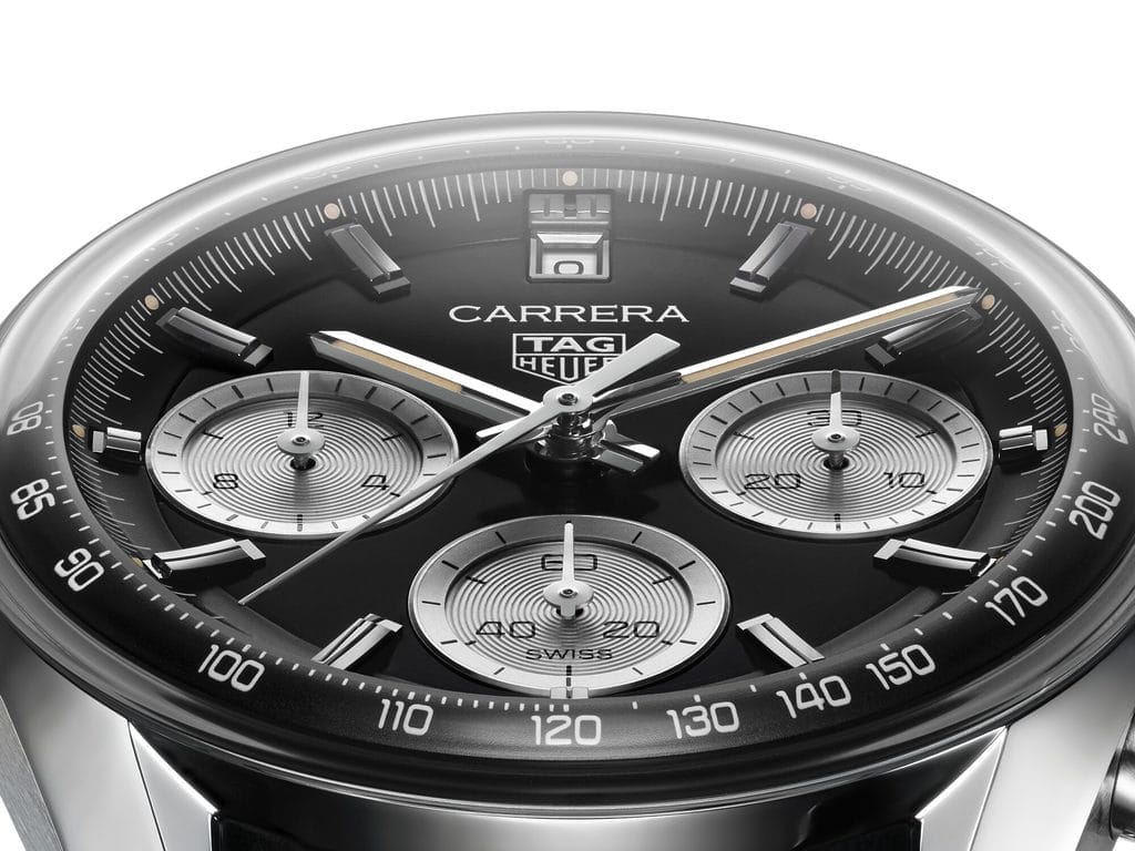 Une seule montre pouvait relever ce défi : la nouvelle TAG Heuer Carrera Chronograph, revisitée et perfectionnée pour sa septième décennie d’existence. Son boîtier est surmonté d’un verre saphir bombé évoquant les modèles des années 1970, mais avec un nouveau design permettant à la courbe de suivre avec fluidité l’échelle tachymétrique, tout en parcourant le bord du cadran.