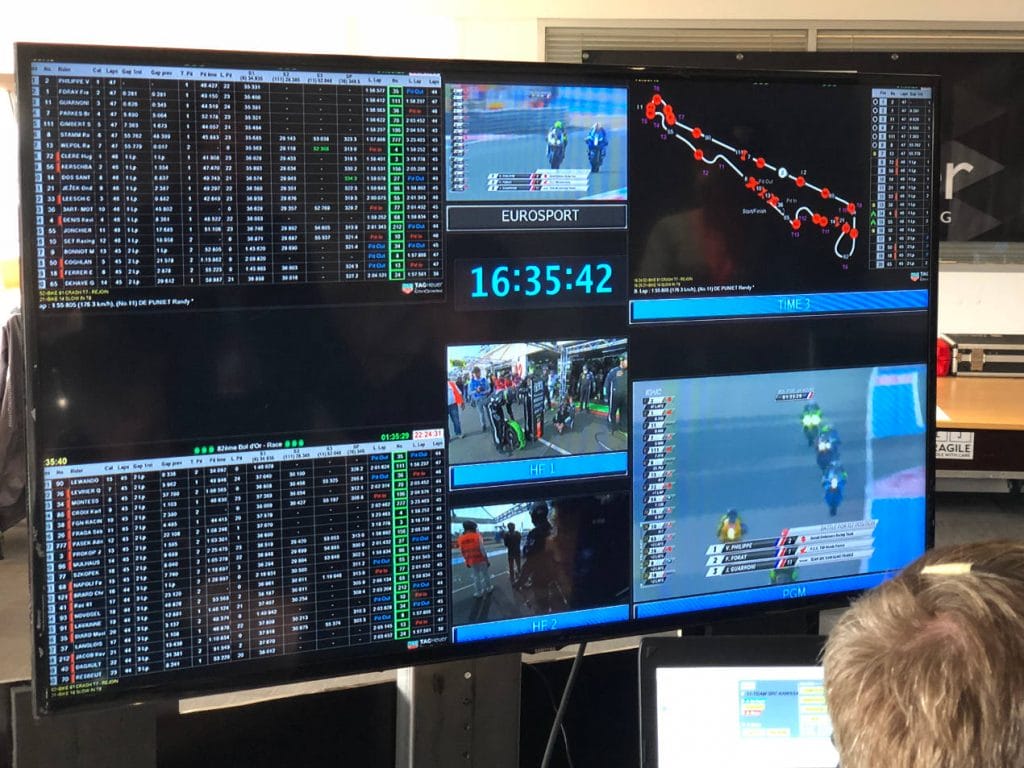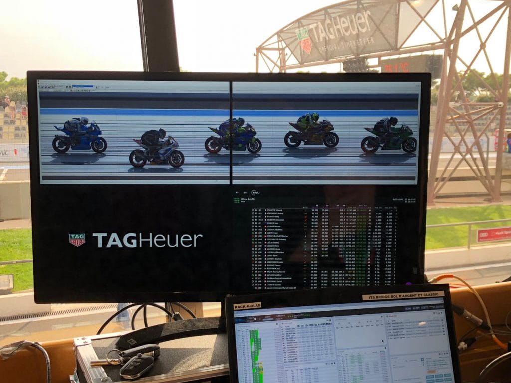 Tout le savoir-faire de la marque en terme de chronométrie est mobilisé pour fournir les informations précieuses à tous les acteurs de la course. C’est ainsi que chacune des 59 motos en course est équipée d’une balise permettant de transmettre les informations de passages sur des points précis du circuit au chronométreur. Des caméras ayant une précision au 10 millième de seconde sont placées tout autour du circuit. Et un système de photo-finish précis au pixel est placé sur la ligne d’arrivée.