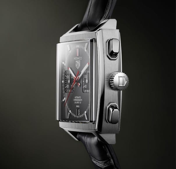 Lors du lancement de la Monaco Calibre 12, TAG Heuer venait compléter la collection avec une version qui se voulait moderne et différente de la Monaco Calibre 11, notamment avec sa couronne à droite. Pour cette dernière Edition, limitée à 1000 exemplaires, TAG Heuer a fait le choix d’un cadran gris en ruthénium brossé, associé à un bracelet alligator noir.