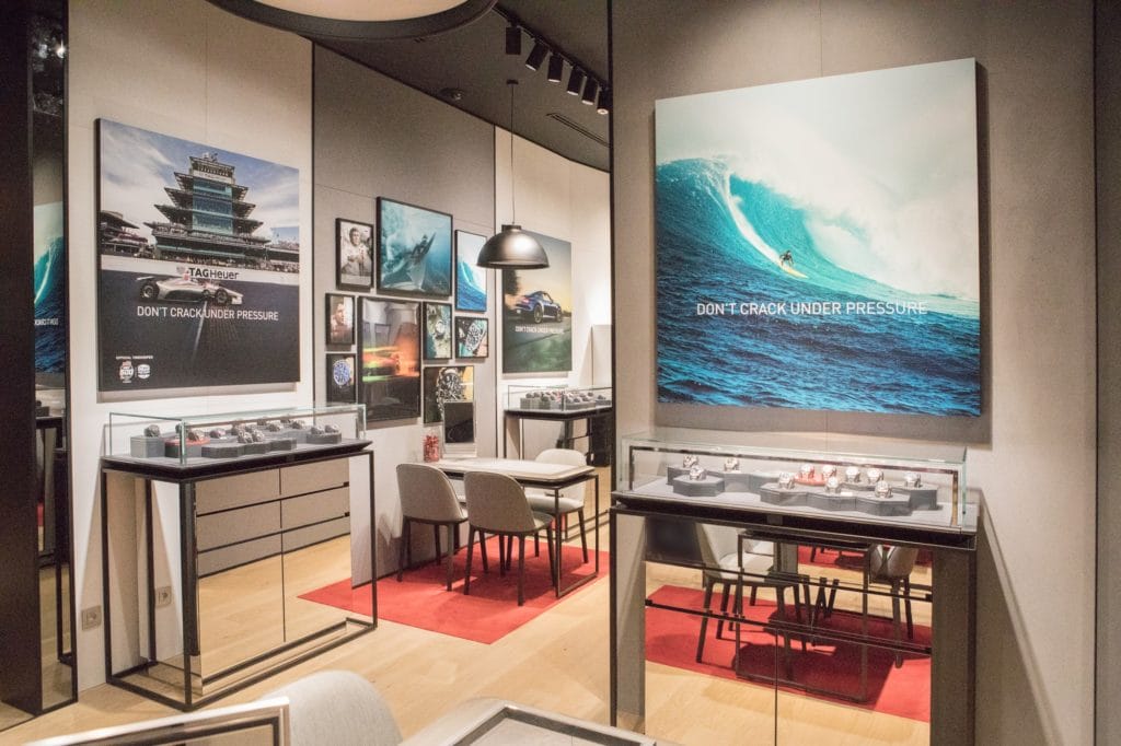 Cette boutique de 40 mètres carrés, dont le concept a été complètement développé en interne, reflète les valeurs et territoires privilégiés de la Maison : l’innovation, la performance et les sports de vitesse et de précision. L’agencement et les matériaux choisis font écho à l’esprit d’avant-garde propre à TAG Heuer. Un nouvel espace immersif où les matières naturelles se mélangent harmonieusement aux matières techniques pour offrir, dans une ambiance chaleureuse, une expérience unique à une clientèle avertie.